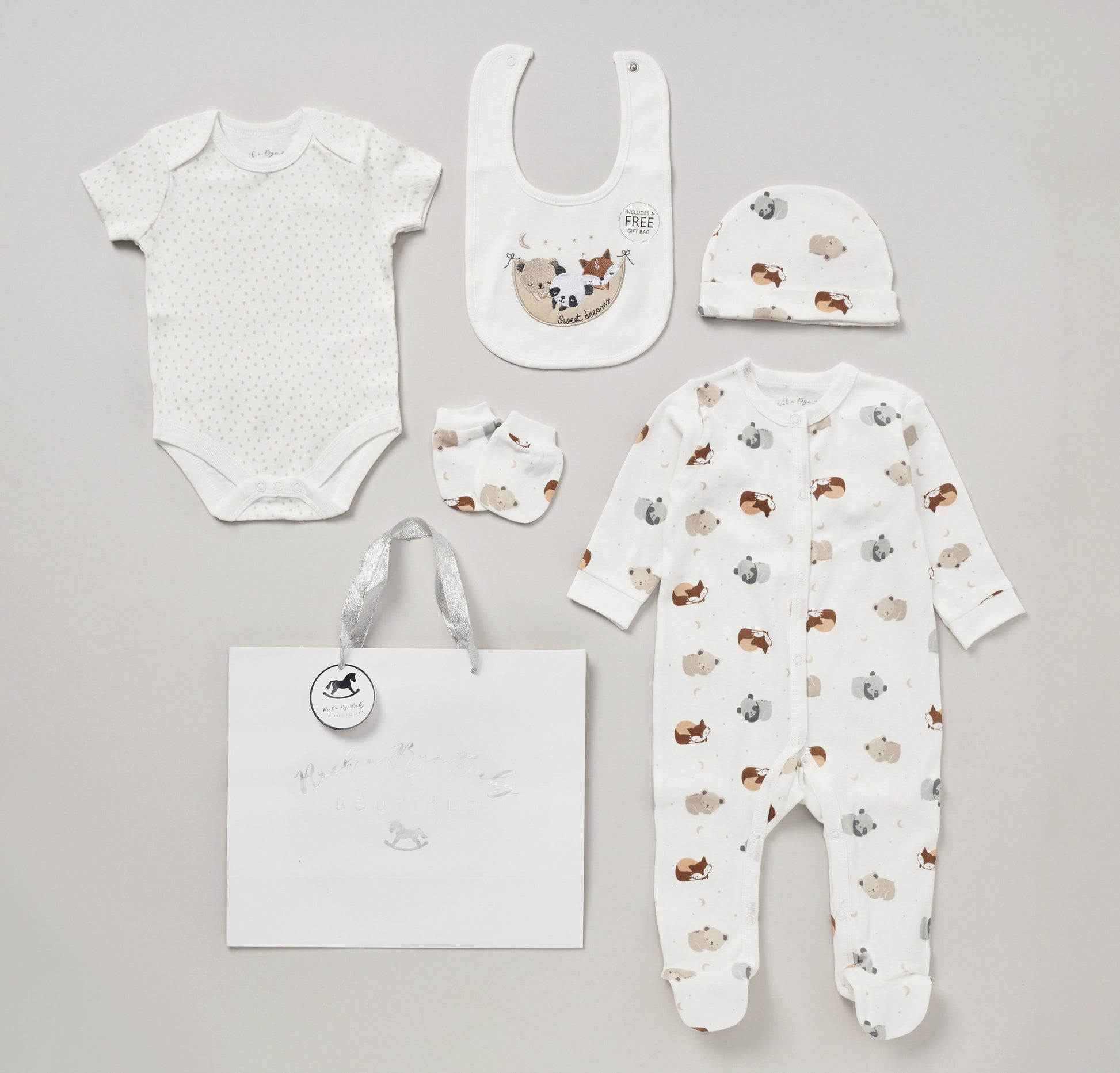 Five piece set. Sweet Dreams animal design.